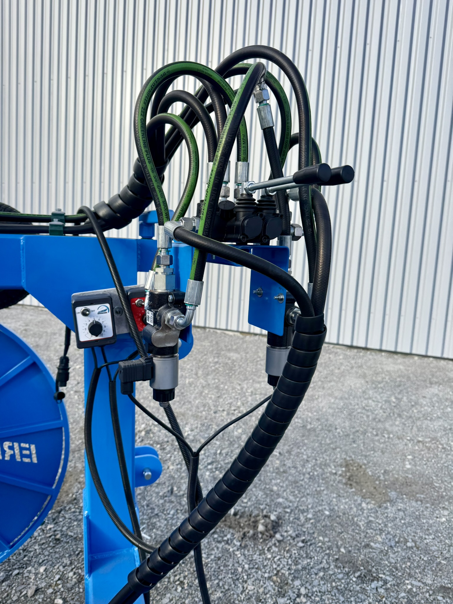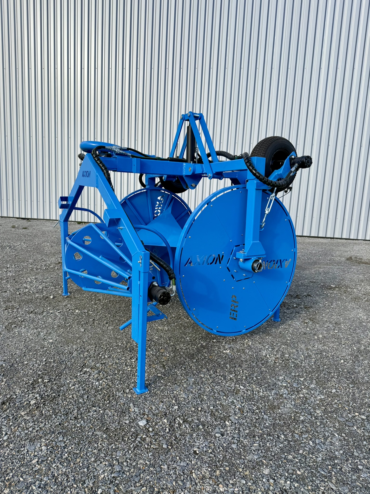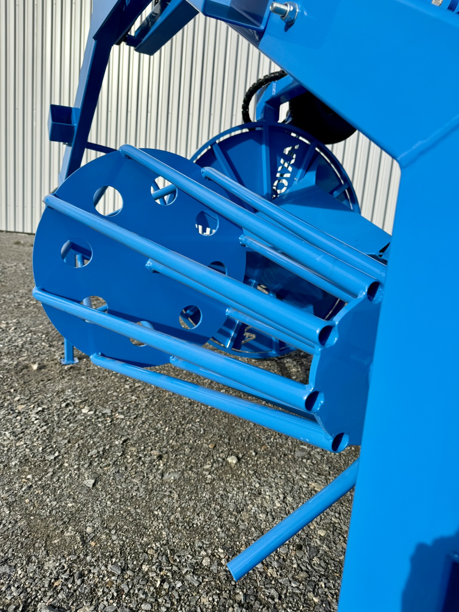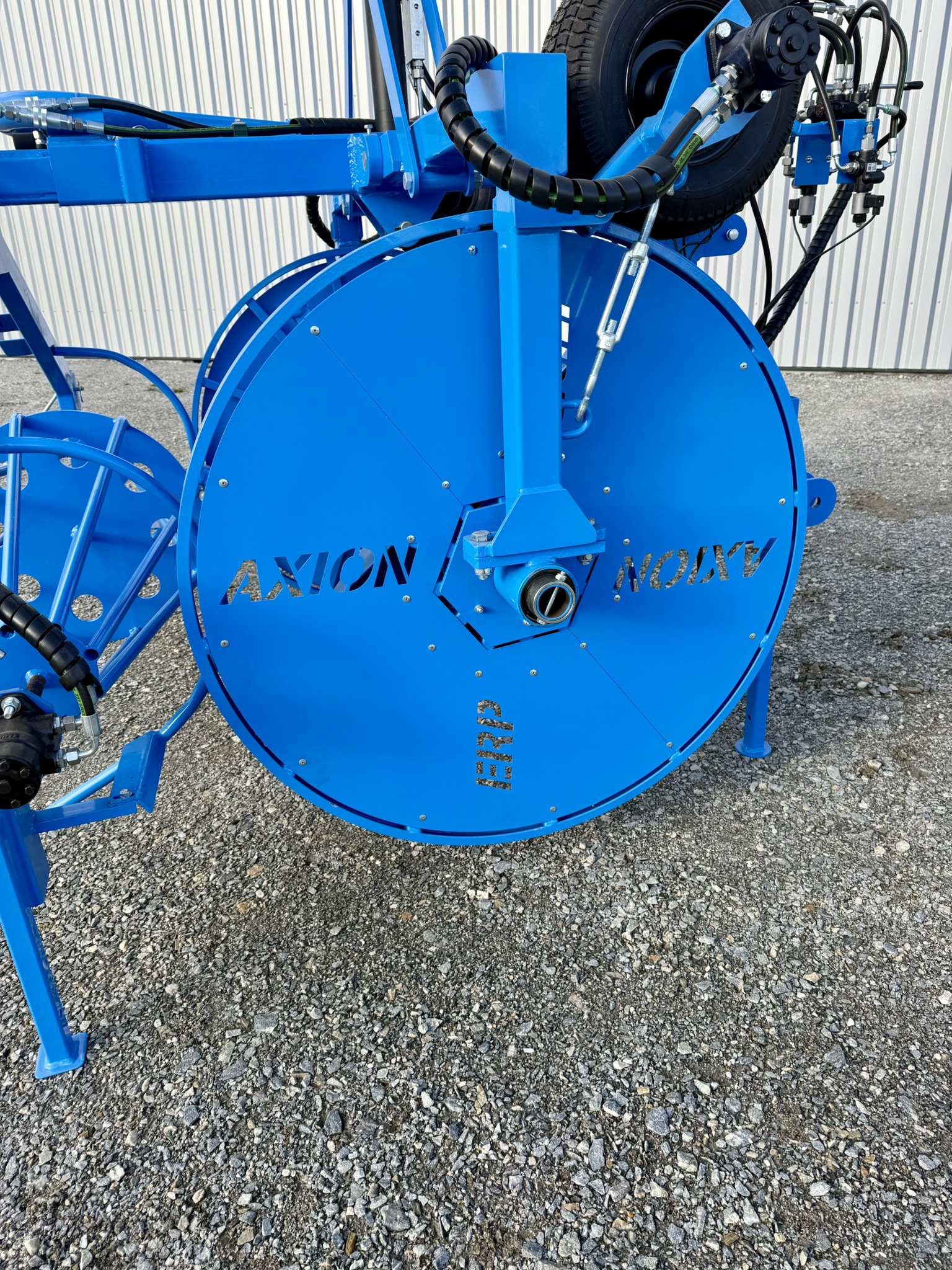 L’ERP a été conçu spécialement pour la récupération du film plastique. Les cônes métalliques sont relevables distinctement pour pouvoir retirer correctement le film plastique. La cage métallique devant les cônes sert à bien répartir et positionner le film lors de l’enroulement.